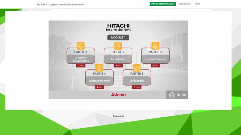 La relation de confiance que nous avons nouée avec la responsable formation et les deux préventeurs de la société HITACHI, a naturellement débouché sur la fourniture de notre propre plateforme LMS.